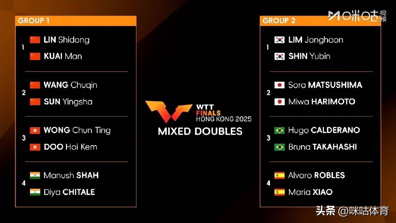12月8日,WTT年终总决赛各方式抽签效果揭晓,混双抽签的效果为,王楚钦/孙颖莎、林诗栋/蒯曼、黄镇廷/杜凯琹、玛纳什-沙/奇塔莱分入吞并小组,两对中国组合组合将为了争夺出线限额张开浓烈的竞争!